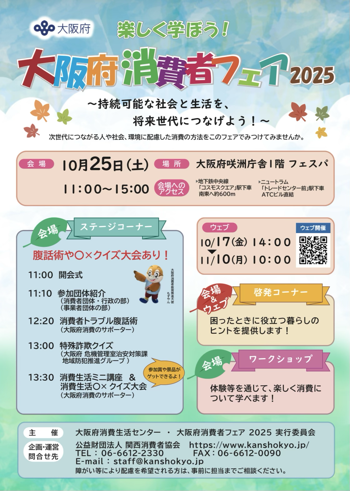 - 配信ウェブサイト:大阪府消費生活センター内の大阪府消費者フェア2025特設サイト